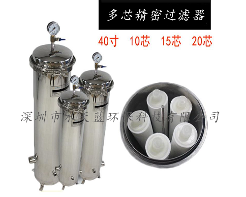 多芯精密過濾器是一種常見的過濾設(shè)備,可以用來過濾原水中殘存的微量懸浮顆粒、膠體、微生物等,隨著制水時間的增長,濾芯因截留物的污染,其運(yùn)行阻力逐漸上升,當(dāng)運(yùn)行至進(jìn)出口水壓差達(dá)0.1MPa時,應(yīng)更換濾芯。多芯精密過濾器采用成型的濾材,在壓力的作用下,使原液通過濾材,濾渣留在管壁上,濾液透過濾材流出,最終達(dá)到過濾的目的。