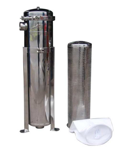袋式過濾器的內部構成主要有過濾筒體、過濾筒蓋、快開機構、不銹鋼濾袋加強網等配件組成。袋式過濾器工作溫度是一般是5℃-40℃,筒制材質為304、316L不銹鋼或應要求材料定制。袋式過濾器種類有單袋式、多袋式、并聯式、濾芯式這幾種,過濾器內每只濾袋都有單獨的鎖緊裝置,保證無側漏情況的發生。過濾器配置的搖臂提升裝置,O型全密封,高強快開螺栓,保證了過濾器的穩定性及使用效果。濾袋類型有單絲網型,即表面過濾型結構,孔徑在100-800微米;針氈布型,即立體蓬松深層過濾結構,孔徑在1-200微米;熔吹無紡布型,即深層過濾結構,孔徑在1-100微米三種。不同的過濾袋類型可滿足到不同的生產工藝要求。濾袋材料的耐酸堿,耐高溫等性能可以適應不同的被過濾液體自身的化學兼容性要求。