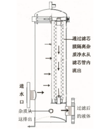 鈦棒過濾器是一種壓力式過濾設(shè)備,當(dāng)過濾器開始工作時,壓力泵會將液體從進水口壓入過濾器罐體內(nèi)部,鈦棒是一種磁力非常高的介質(zhì),也可以當(dāng)做一個強力磁鐵濾芯。如果液體中含有金屬或者其他固體物質(zhì),這類雜質(zhì)通過濾芯時,就會被濾芯所攔截,從而留在鈦棒濾芯表面。干凈的會就會通過過濾器的產(chǎn)水口流出。