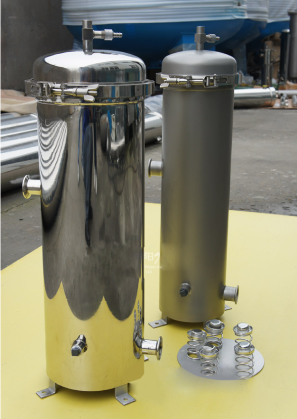 袋式過濾器操作方法比較簡單,在使用時,只需要將所需細度等級的濾袋放置在濾筒內,檢查O型密封圈密封性是否完好,之后旋緊濾筒蓋環形螺栓,設備即可投入工作。此時過濾機上壓力表微微上升,過濾器初始運行壓力約0.05MPa左右,隨著使用時間延長,缸內濾渣逐漸增多,當壓力達到0.4MPa時,應停機打開筒蓋,檢查濾機袋留渣情況,可更換濾袋繼續使用(濾袋通過清洗一般可重復使用)。