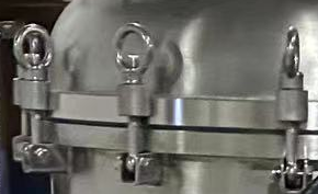 這是袋式過濾器上蓋密封裝置-吊環螺母,它是卡緊在上蓋邊沿,以此封閉上蓋,這種螺母打開需要逆時針擰動上面的圓圈,中間的卡口就會松開,螺母就會松動。