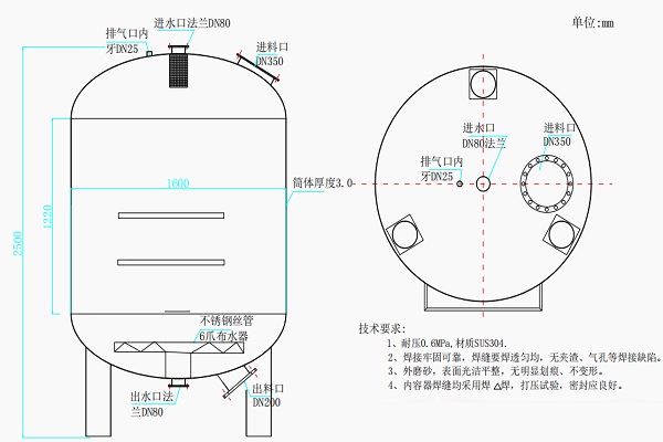 機械過濾器整體內(nèi)部結(jié)構(gòu)SUS304不銹鋼材質(zhì)罐體,濾料層,進出水法蘭,排氣閥,進料口,布爪器、反洗排水口、順洗排水口、壓縮空氣進口等環(huán)節(jié)組成。
